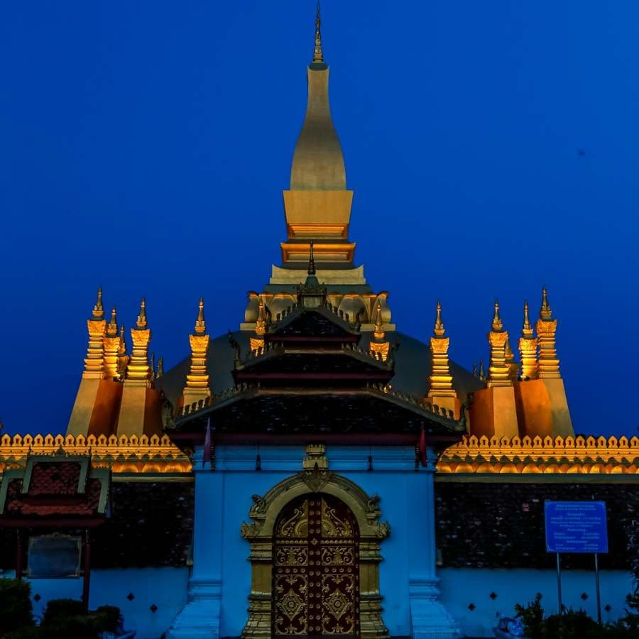 The Pha That Luang is the most important Buddhist monument in Laos. Because its architecture is a prime example of Lao architecture and history, the temple has become symbolic of the country itself. Its image is depicted on Lao’s paper money and national emblem. According to legend, in 1566, when King Settathirath moved the Laotian capital from Luang Prabang to Vientiane, he ordered the construction of a stupa in the shape of a wine urn over the ruins of a 13th-century Hindu temple. This gilded temple is a stupa, a tomb or tower where a relic of the Buddha is enshrined. The gold-covered 45m tall Buddhist monument was built in the 16th century. The modern-day temple is not the original, but a complete reconstruction by the French in the 1930s after the original stupa was destroyed in 1827.