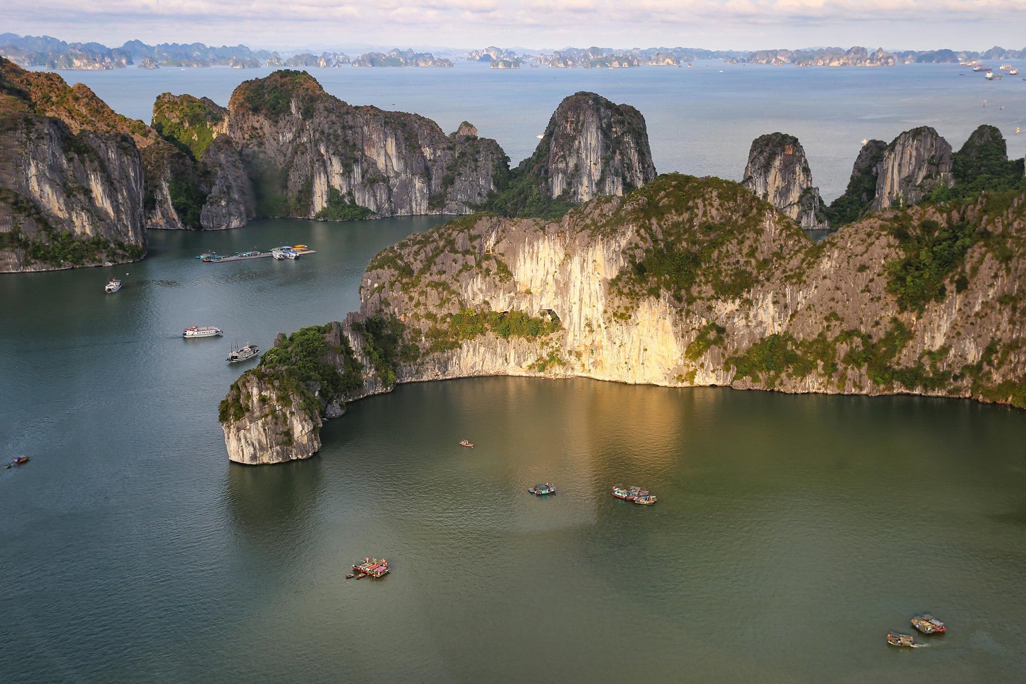 Ninh Binh combines karst peaks with lush paddies and rivers. Boat rides through Tam Coc or Trang An offer dramatic photo angles, especially during rice harvest in May–June. From Mua Cave, photographers can capture sweeping sunrise vistas over fields, rivers, and ancient temples.