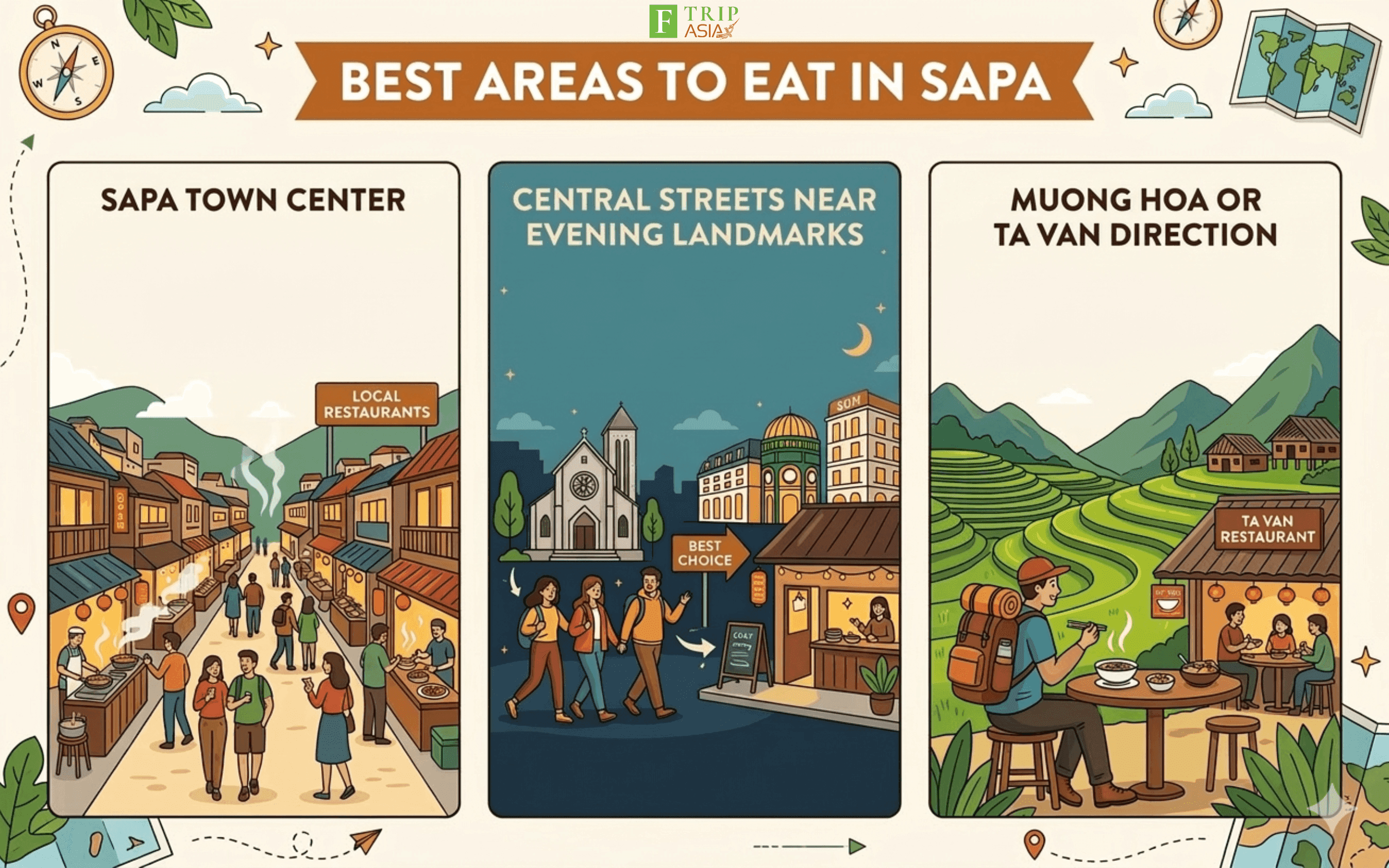 The simplest rule is this: in Sapa, choose the restaurant that matches your evening plan. Cold night and mountain mood? Go hotpot. Mixed group? Go Anise. Post-trek meal in the valley? Stay near Ta Van. That is usually how you get your best meal in town.