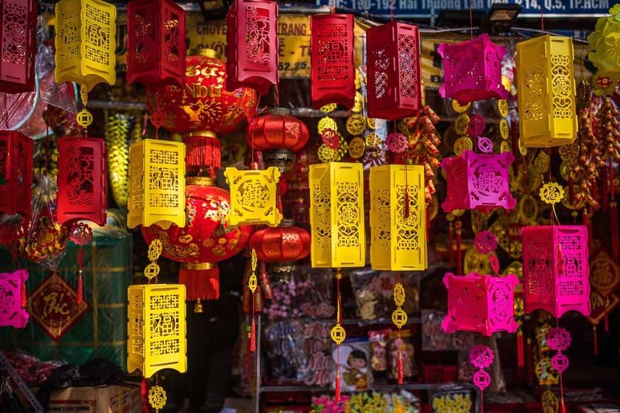 Along the streets, especially in big cities like Hanoi or Ho Chi Minh City, foreigners can easily admire the urban landscape decorated in these two main colors. In addition, there are indispensable objects with many shapes and vibrant colors that locals often use to decorate their homes. It is advised that you buy Tet holiday-style items as souvenirs of your trip during Vietnam New Year. It may be used as house decor or brought as a gift.