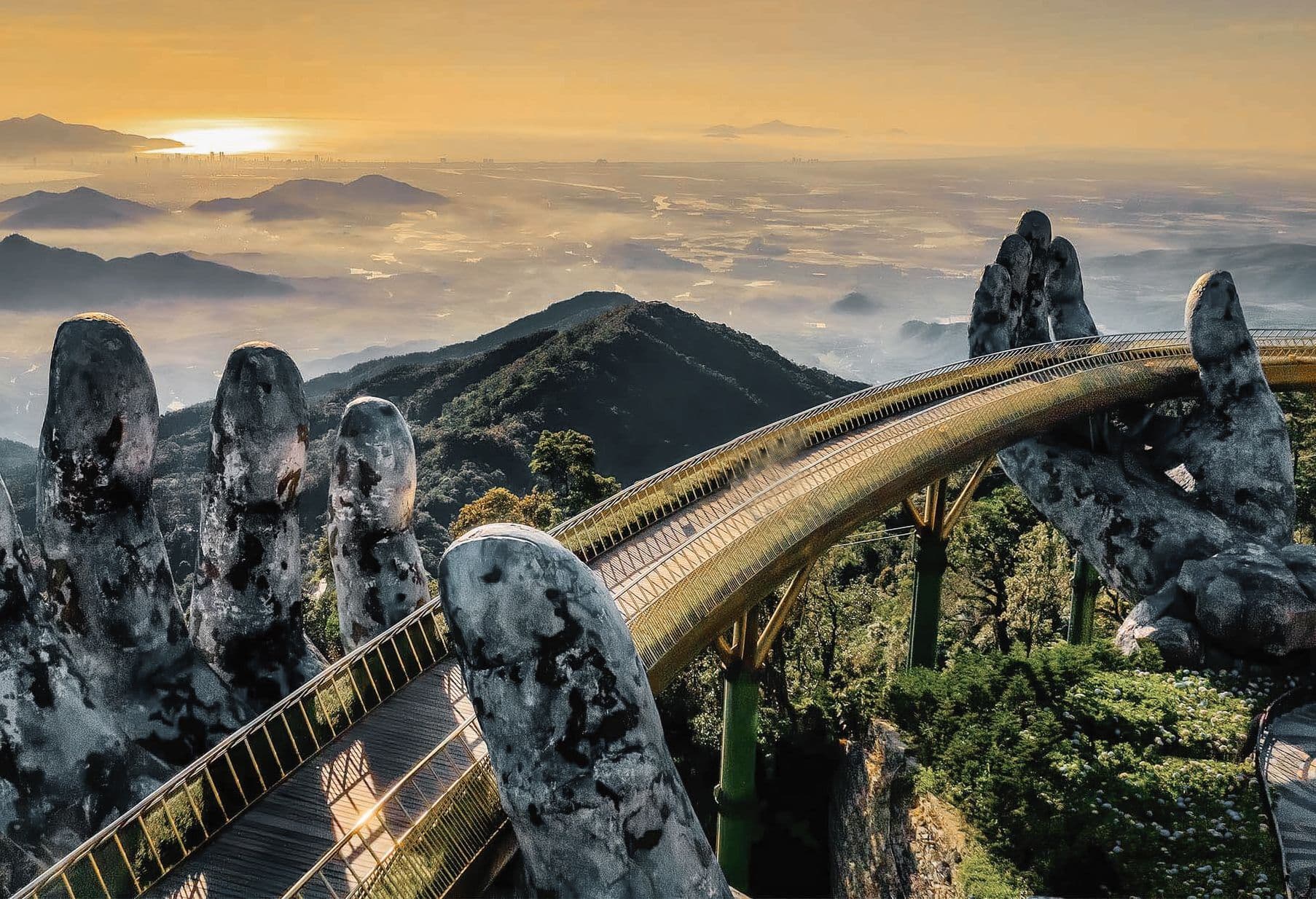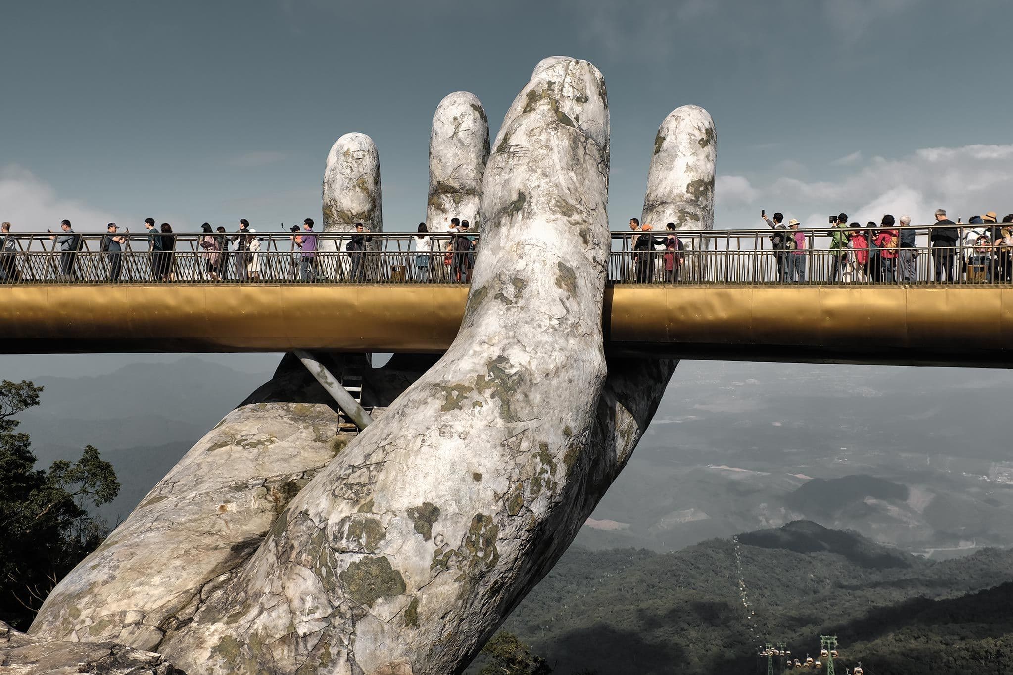 The Golden Bridge is arguably one of the most famous features of the Ba Na Hills entertainment and resort complex in Da Nang. Two moss-wreathed stone hands (actually made out of fiberglass and wire...
